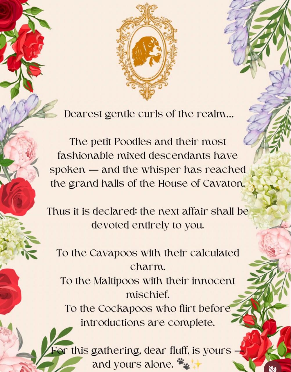 Calling all Cavapoos, Maltipoos, Cockapoos and their fellow curly companions — this elegant gathering is devoted entirely to you.