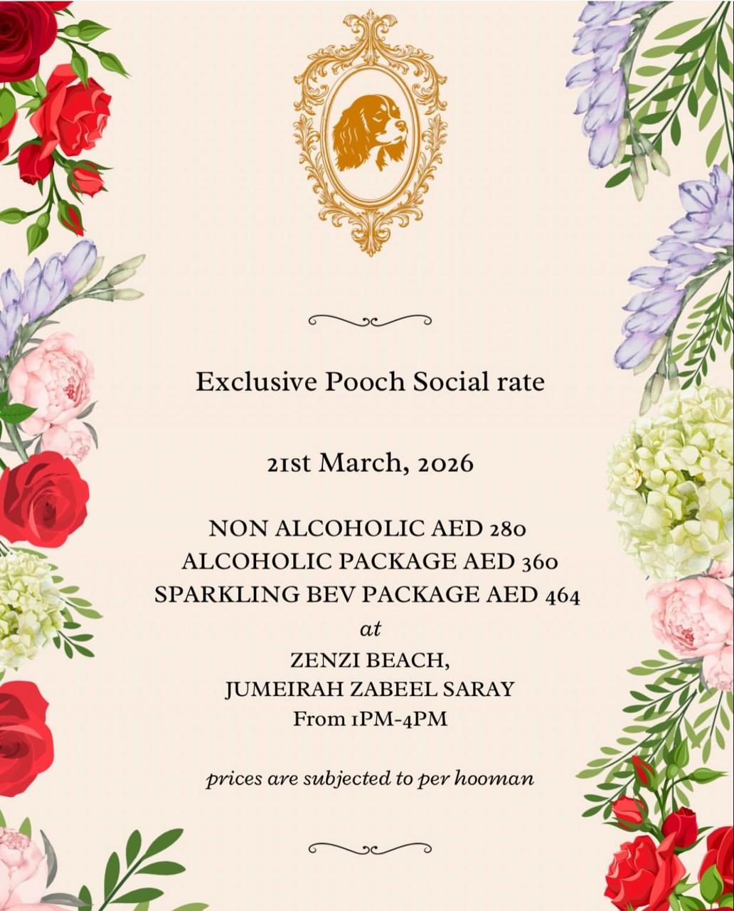 Step into an exclusive afternoon at Zenzi Beach, Jumeirah Zabeel Saray, where petit Poodles and their fashionable mixed descendants will take centre stage. Designed as a refined “Pooch Social,” this curated event brings together like-minded pet parents for a stylish beachside experience filled with charm, connection, and plenty of wagging tails.