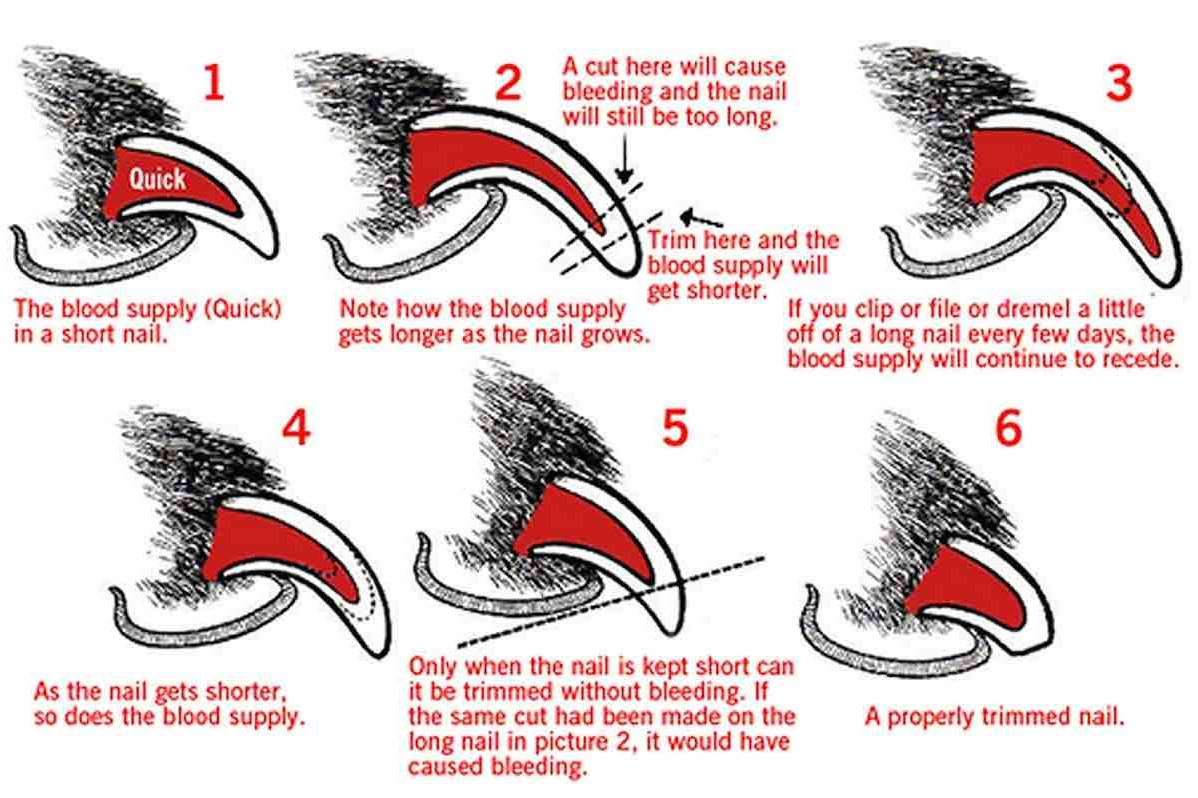 Nail cutting is a little different depending on whether your dog’s nails are white or black. Cutting white nails are easier as you can see the pink inside (the quick) much better. Remember be careful as you do NOT want to cut the vein that can result in bleeding. However, if you accidentally do cut too far, you’ll can use home remedies like: