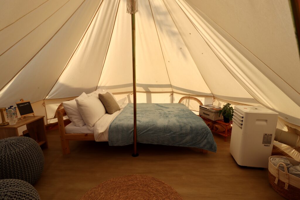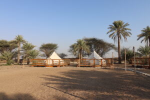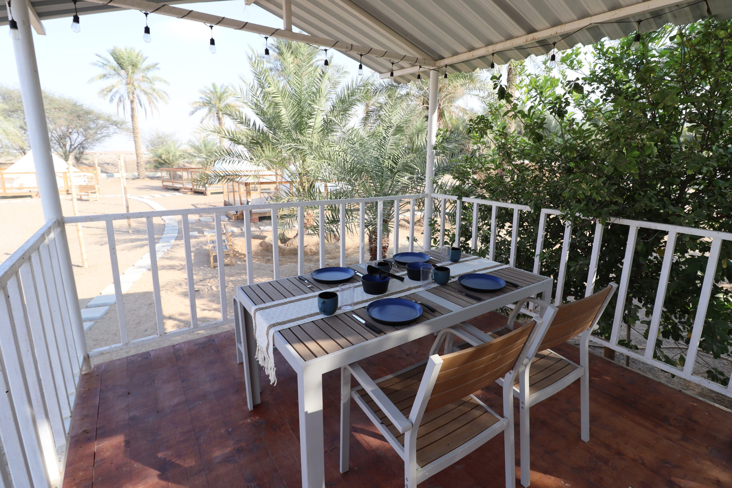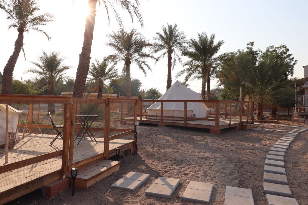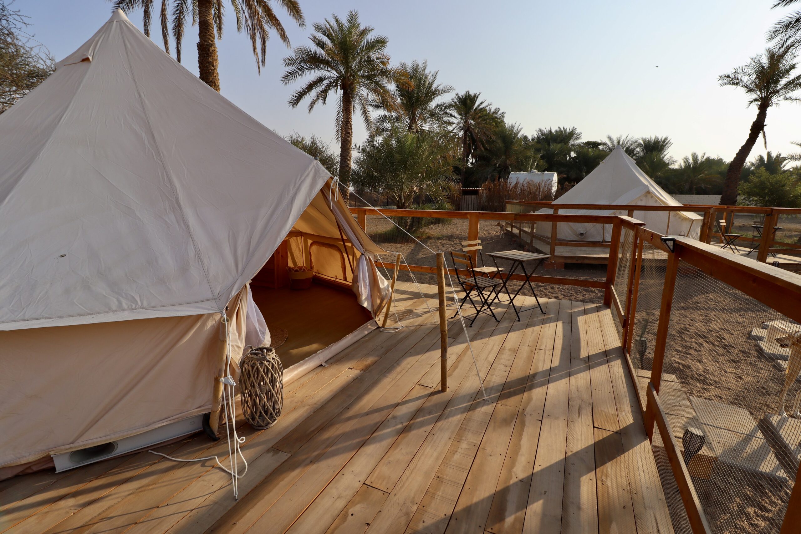 The 4 acre fully-fenced farm is located in a farming community in Al Manama, Ajman. We have 4 glamping tents, all with double bed, AC, private fenced terrace and private bathroom a few meters away from the tents.