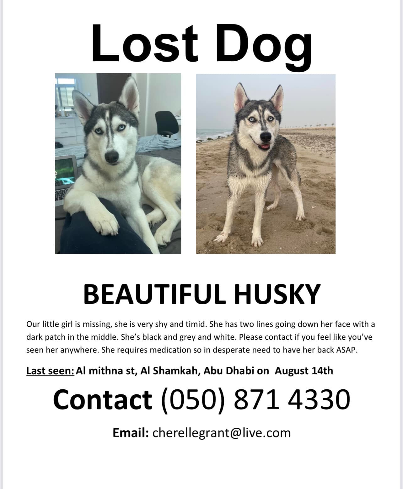Please help ive lost my girl in Abu Dhabi al shamkha area.