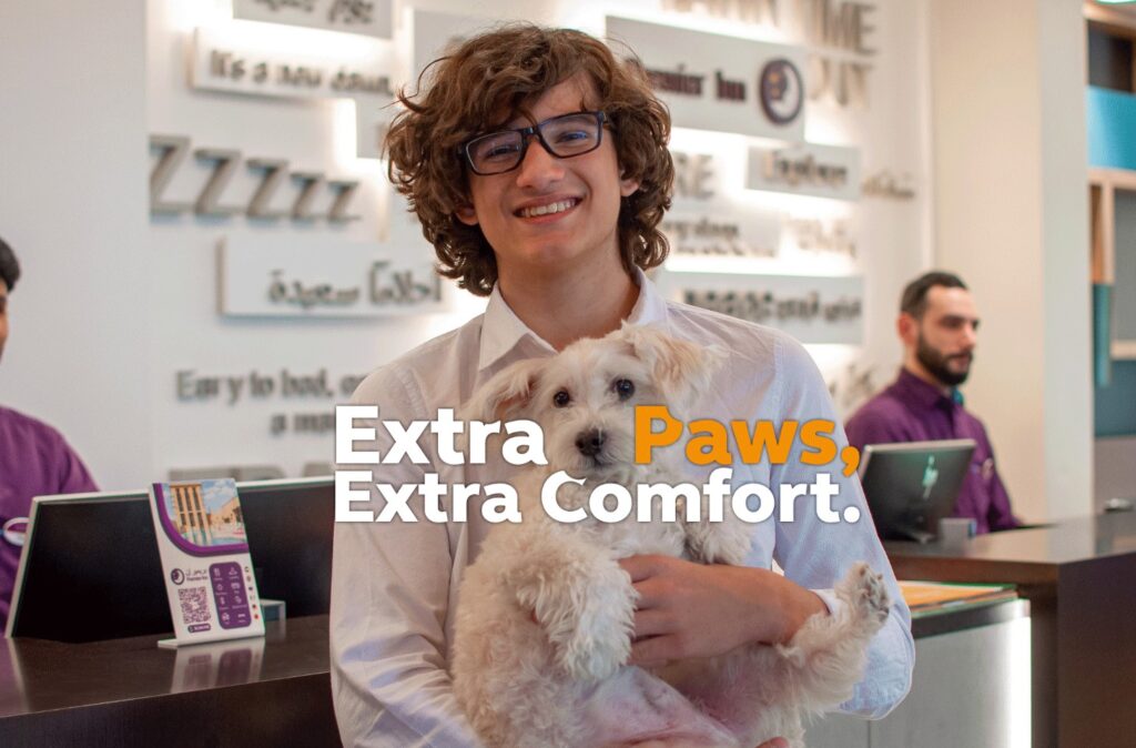 Whether you’re travelling, relocating, or just want your dog by your side, we’ve made it easy. Enjoy our signature super-comfy beds, practical spaces, and a welcoming environment for your four-legged companion.