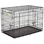 Small - Large dogs can fit.. Size: 36.5 L x 23.25 W x 24.625 H in 2 doors which is foldable and can set up in few minutes.
